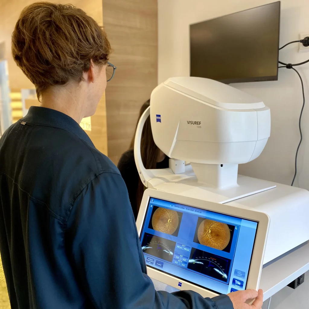 Mit dem VISUREF 1000 von ZEISS setzen wir auf modernste Messtechnik – für präzise Ergebnisse und eine individuell auf dich abgestimmte Sehanalyse. Neben der biometrischen Messung von Sehstärke und weiteren Parametern ermöglicht das Gerät auch einen Augen-Check-up mit Netzhautbild und Augeninnendruckmessung – schnell, kontaktlos und ohne Aufwand.